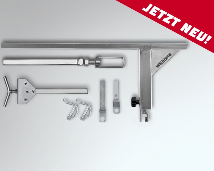Der Profiadapter „SF“ sollte als Ergänzung zu den herkömmlichen Profiadapter Sets eingesetzt werden. Fahrzeuge, die am Türscharnier keine Bolzen sondern Löcher haben, können mit diesem Set nicht aufgespannt werden!