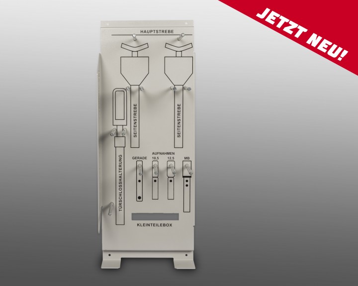 Mit der stabilen Wandhalterung können nun bis zu 4 Profiadapter inklusive Zubehör kompakt und übersichtlich an einem Platz aufbewahrt werden. Durch die Markierungen auf der Wandhalterung hat jedes Zubehör seinen fixen Platz, wodurch Teile seltener verloren gehen und so keine Unordnung mehr entstehen kann.