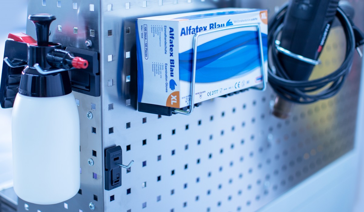 Das Workcenter wurde so gestaltet, dass es prinzipiell in jedem Fahrzeuglackierbetrieb eingesetzt werden kann. Es bietet dafür an den entscheidenden Stellen individuelle Anpassungsmöglichkeiten. Vom Einsatz des gewünschten Staubsaugers über die Gestaltung und Einteilung der Schubladen bis hin zur praktischen Lochwand - hier sind der individuellen Einrichtung keine Grenzen gesetzt. Selbstverständlich bieten wir aber auch hier einen Standard, der sich für die Mehrheit der Fahrzeuglackierbetriebe eignet und jederzeit erweitert und angepasst werden kann.